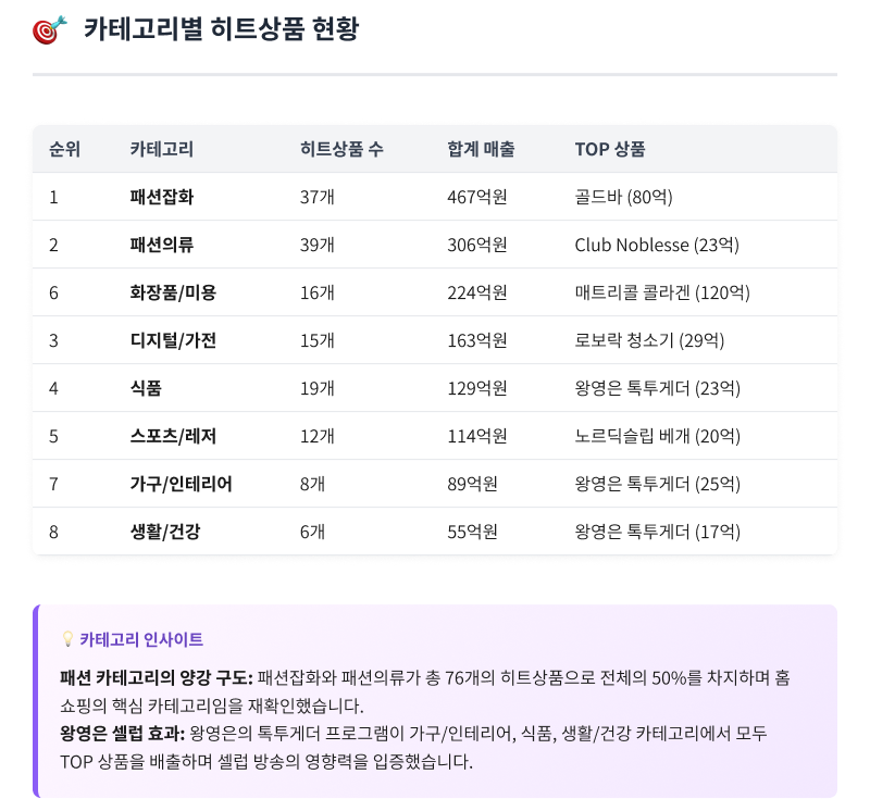 '25년 10월 홈쇼핑 방송 및 히트상품 분석