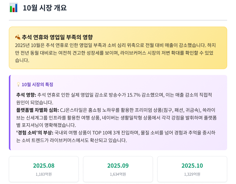 10월 라방 시장 분석 : 적은 영업일로 인한 거래액 감소
