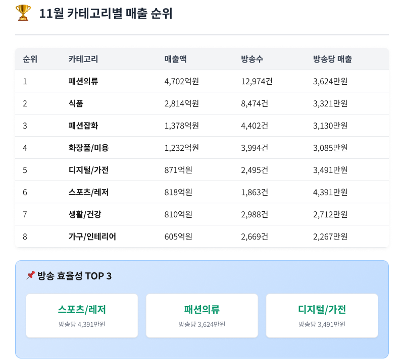 [홈쇼핑] 11월 홈쇼핑 시장 리포트