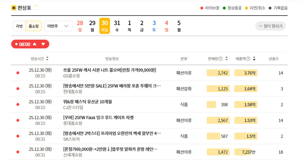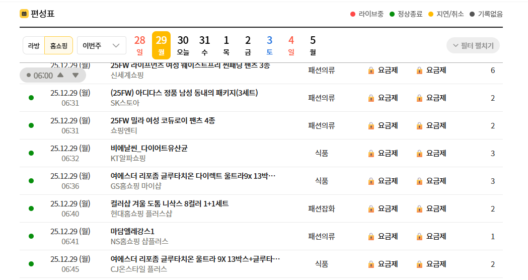 편성표에서 당일 실적은 문제 없이 조회가 되는데, 과거 실적은 요금제로 자물쇠가 잠겨져서 안보입니다.