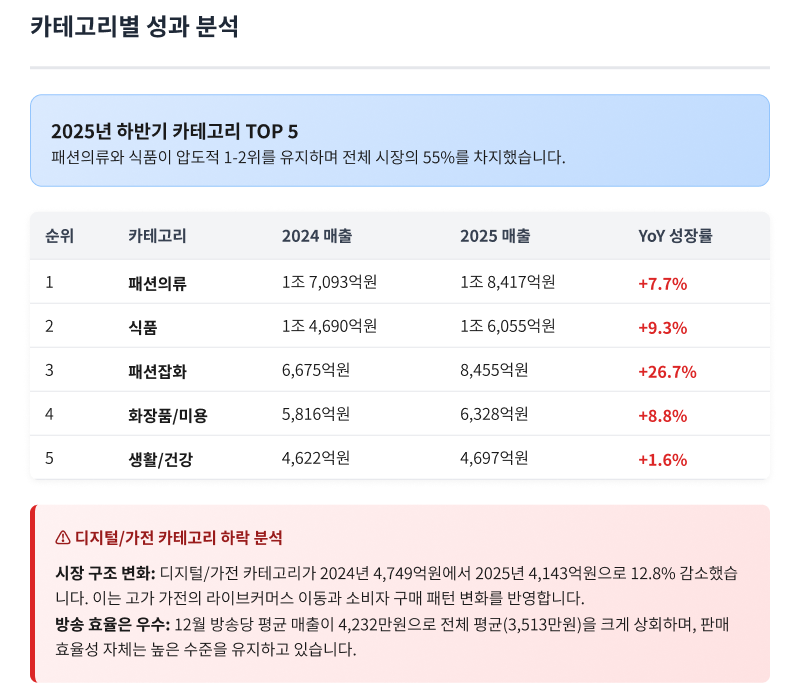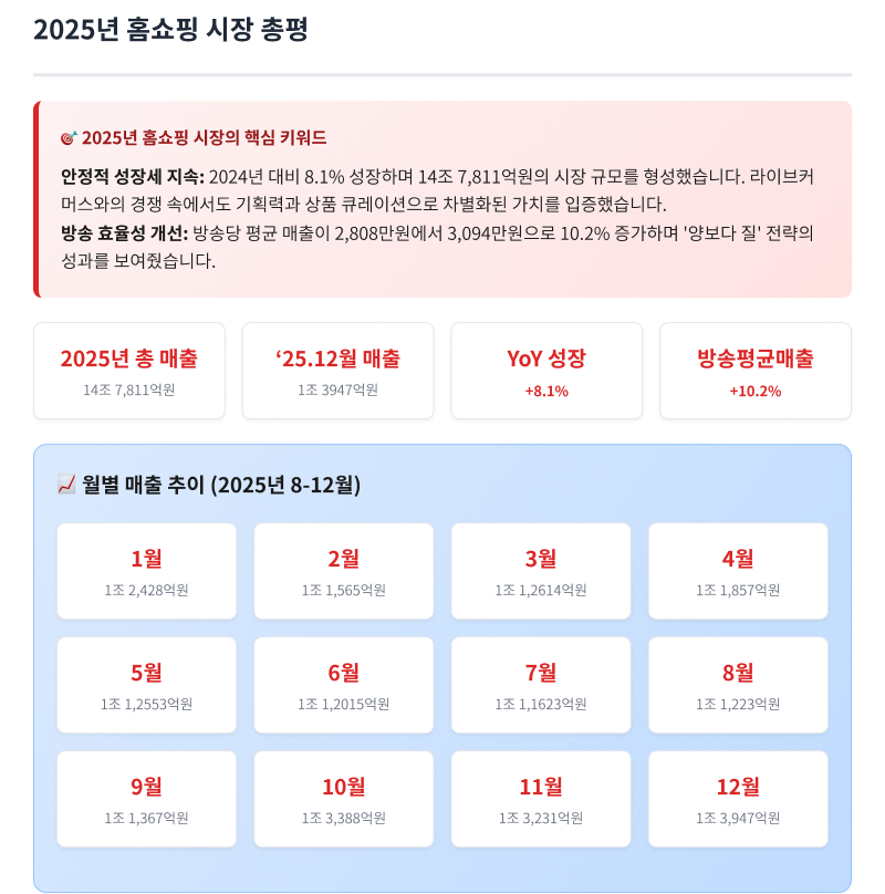 해당 수치는 쿠폰 및 취소 내역이 반영되지 않은 방송 중 거래액을 기준으로 한 추정치이며,보다 정확한 공식 자료는 한국TV홈쇼핑협회에서 제공하는 데이터를 참고해 주시기 바랍니다.