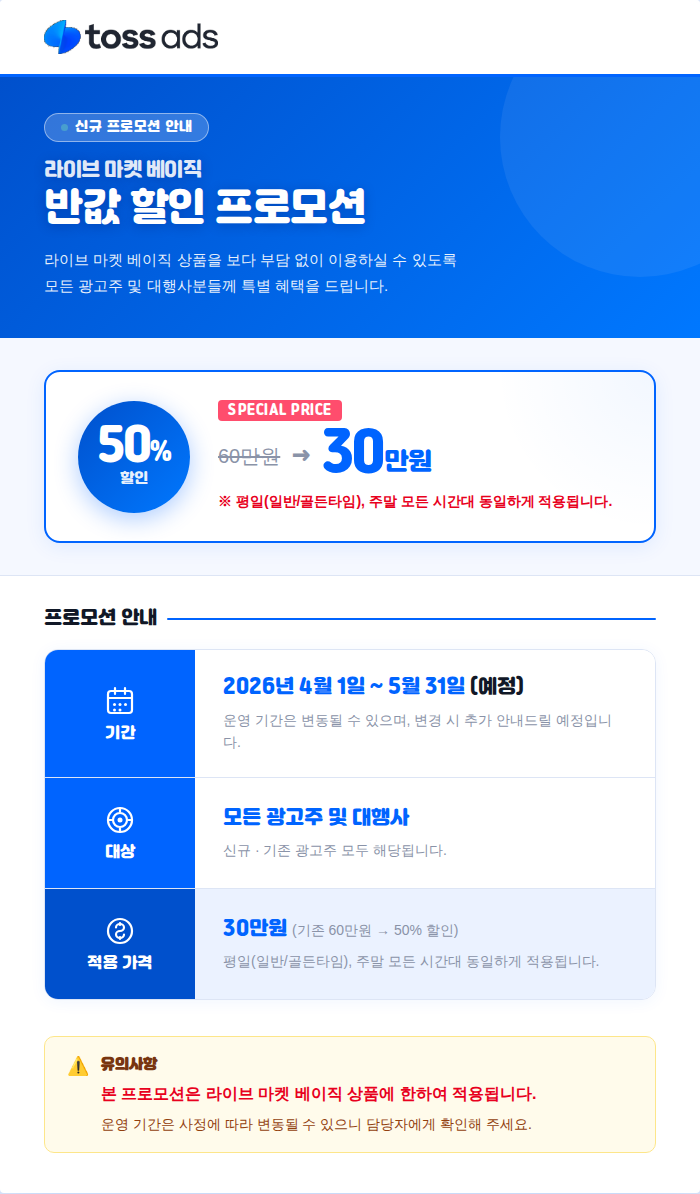 토스 라이브 마켓 베이직 상품 30만원 프로모션