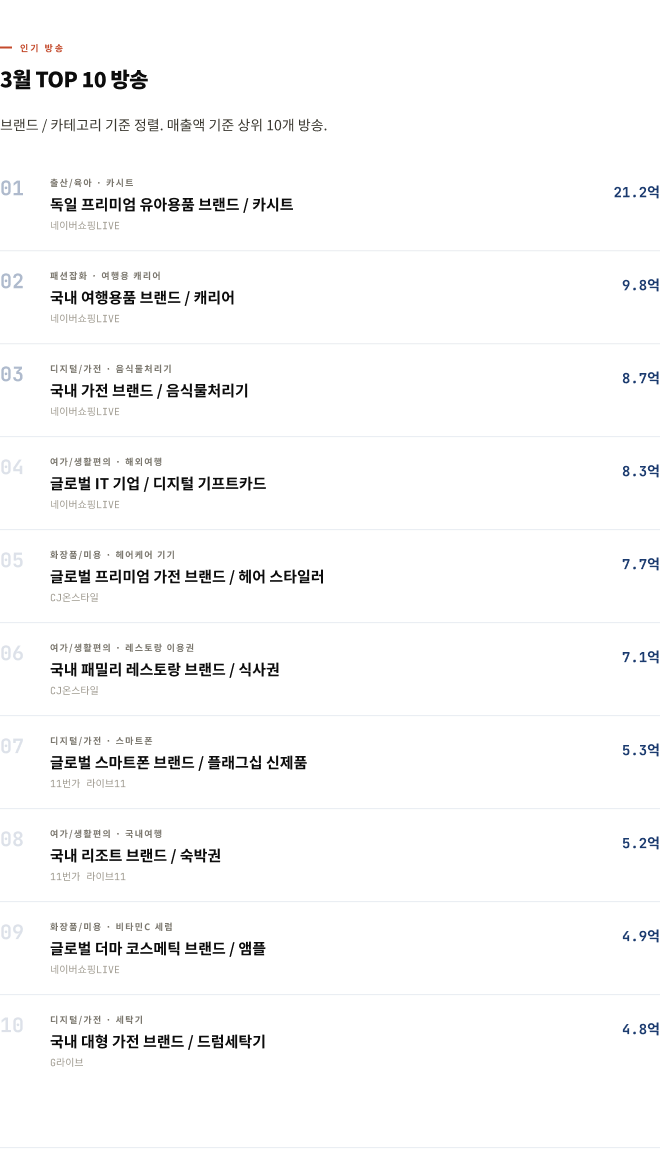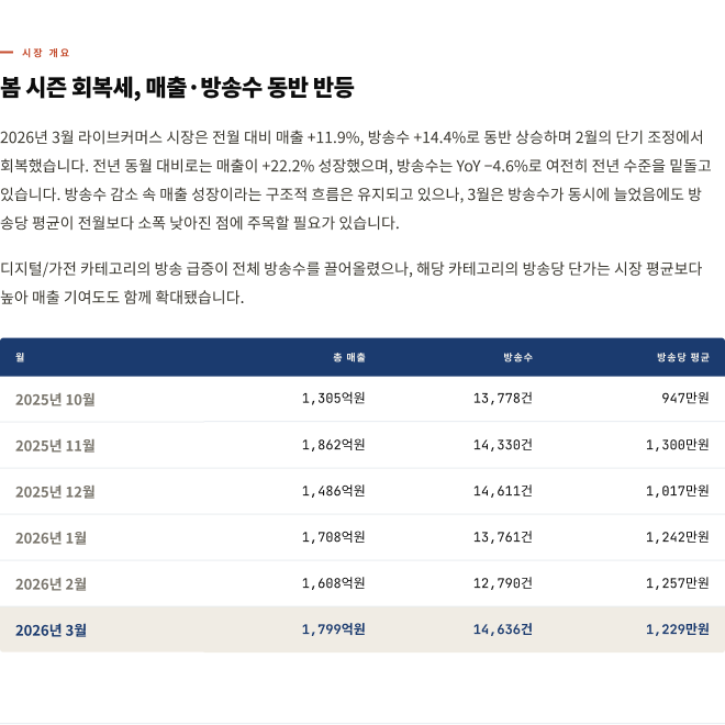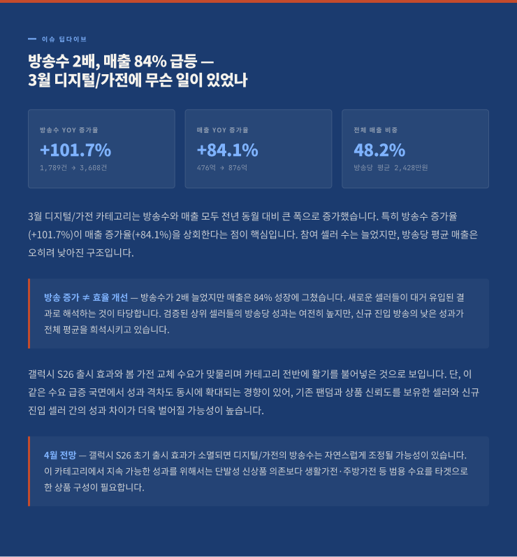 26년 3월 라방 시장 분석, 디지털 가전이 성장 견인