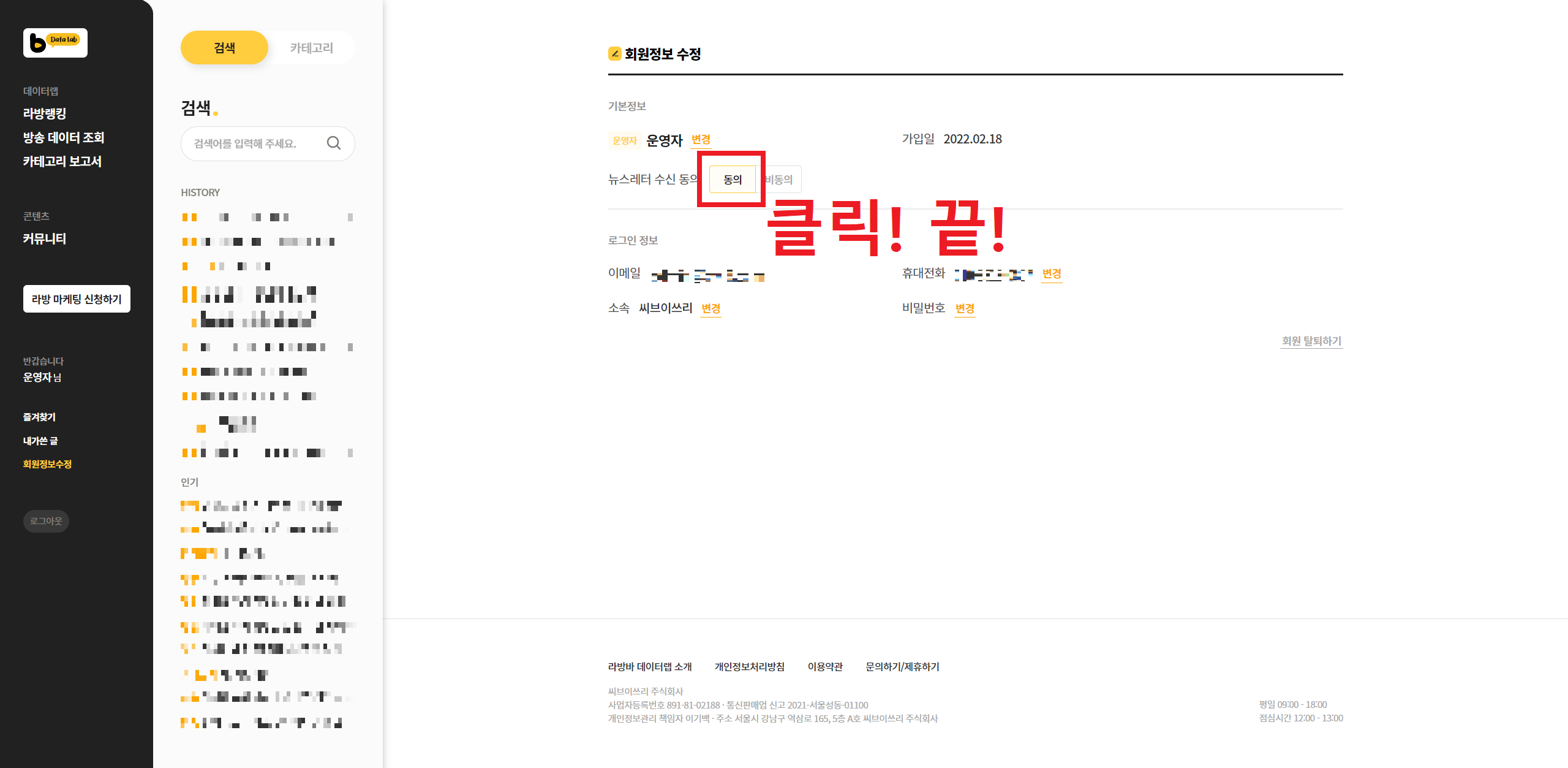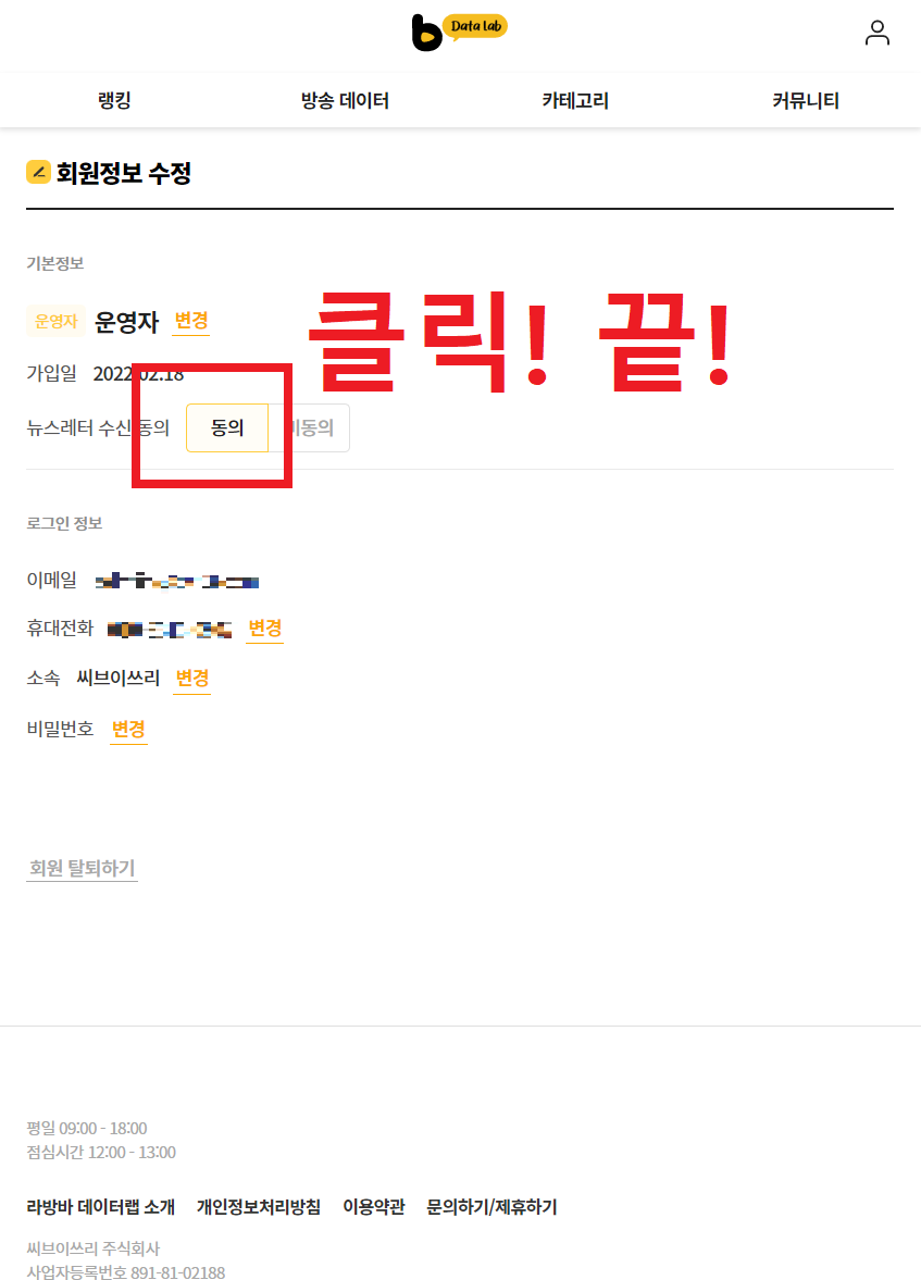 3. 뉴스레터 수신 동의 ‘동의’ 클릭, 끝!
