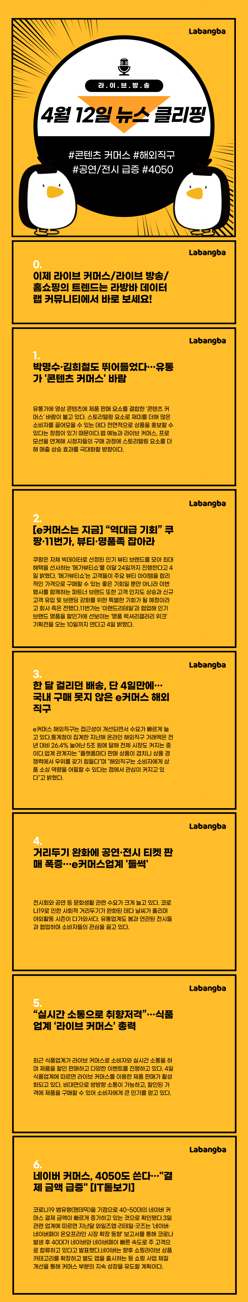 [4월 12일 뉴스 클리핑] 네이버 커머스 4050 결재 급증, 공연/전시 폭주